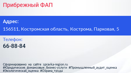 Прибрежный ФАП по адресу 156511, Костромская область, Кострома, Парковая, 5 в дальнейшем Организация, размещена в следующих категориях: