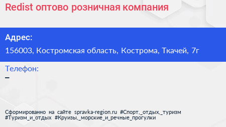 Redist, оптово-розничная компания по адресу 156003, Костромская область, Кострома, Ткачей, 7г в дальнейшем Организация, размещена в следующих категориях: