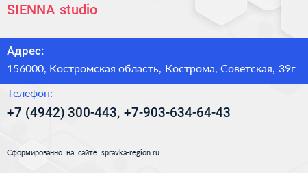 SIENNA.studio по адресу 156000, Костромская область, Кострома, Советская, 39г в дальнейшем Организация, размещена в следующих категориях: