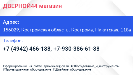 ДВЕРНОЙ44, магазин по адресу 156029, Костромская область, Кострома, Никитская, 118а в дальнейшем Организация, размещена в следующих категориях: