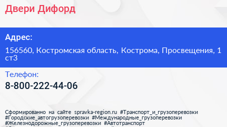 Двери Дифорд по адресу 156560, Костромская область, Кострома, Просвещения, 1 ст3 в дальнейшем Организация, размещена в следующих категориях:
