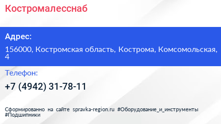 Костромалесснаб по адресу 156000, Костромская область, Кострома, Комсомольская, 4 в дальнейшем Организация, размещена в следующих категориях: