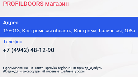 PROFILDOORS, магазин по адресу 156013, Костромская область, Кострома, Галичская, 108а в дальнейшем Организация, размещена в следующих категориях: