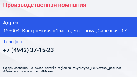 Производственная компания по адресу 156004, Костромская область, Кострома, Заречная, 17 в дальнейшем Организация, размещена в следующих категориях: