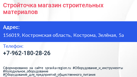 Стройточка, магазин строительных материалов по адресу 156019, Костромская область, Кострома, Зелёная, 5а в дальнейшем Организация, размещена в следующих категориях: