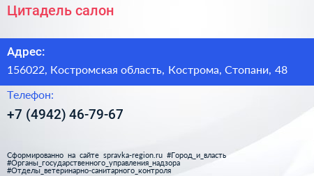 Цитадель, салон по адресу 156022, Костромская область, Кострома, Стопани, 48 в дальнейшем Организация, размещена в следующих категориях: