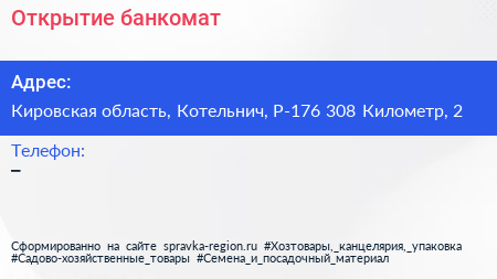 Открытие, банкомат по адресу Кировская область, Котельнич, Р-176 308 Километр, 2 в дальнейшем Организация, размещена в следующих категориях: