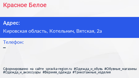 Красное & Белое по адресу Кировская область, Котельнич, Вятская, 2а в дальнейшем Организация, размещена в следующих категориях: