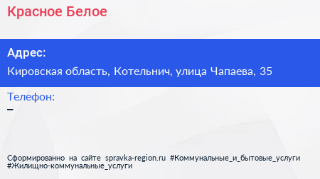 Красное & Белое по адресу Кировская область, Котельнич, улица Чапаева, 35 в дальнейшем Организация, размещена в следующих категориях: