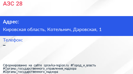 АЗС №28 по адресу Кировская область, Котельнич, Даровская, 1 в дальнейшем Организация, размещена в следующих категориях: