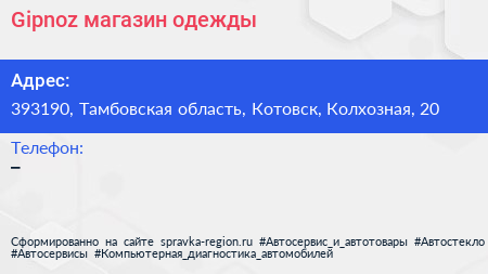 Gipnoz, магазин одежды по адресу 393190, Тамбовская область, Котовск, Колхозная, 20 в дальнейшем Организация, размещена в следующих категориях: