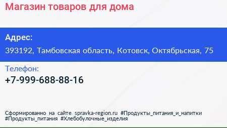 Магазин товаров для дома по адресу 393192, Тамбовская область, Котовск, Октябрьская, 75 в дальнейшем Организация, размещена в следующих категориях: