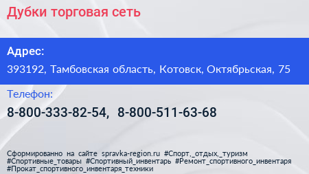 Адрес: Тамбовская область, Котовск, Октябрьская, 20