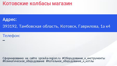 Котовские колбасы, магазин по адресу 393192, Тамбовская область, Котовск, Гаврилова, 1а к4 в дальнейшем Организация, размещена в следующих категориях: