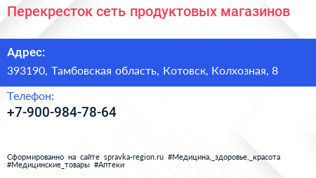 Перекресток, сеть продуктовых магазинов по адресу 393190, Тамбовская область, Котовск, Колхозная, 8 в дальнейшем Организация, размещена в следующих категориях: