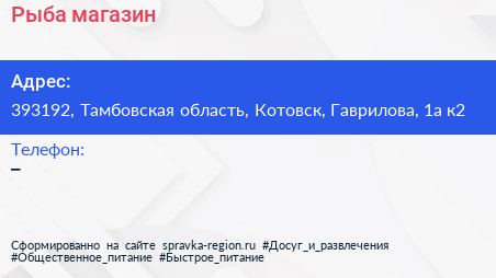 Рыба, магазин по адресу 393192, Тамбовская область, Котовск, Гаврилова, 1а к2 в дальнейшем Организация, размещена в следующих категориях: