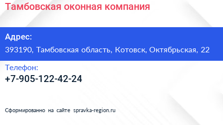 Тамбовская оконная компания по адресу 393190, Тамбовская область, Котовск, Октябрьская, 22 в дальнейшем Организация, размещена в следующих категориях:
