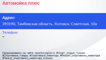 Автомойка плюс по адресу 393190, Тамбовская область, Котовск, Советская, 10а в дальнейшем Организация, размещена в следующих категориях: