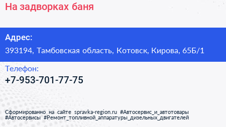 На задворках, баня по адресу 393194, Тамбовская область, Котовск, Кирова, 65Б/1 в дальнейшем Организация, размещена в следующих категориях: