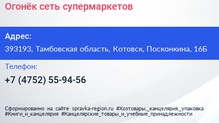 Огонёк, сеть супермаркетов по адресу 393193, Тамбовская область, Котовск, Посконкина, 16Б в дальнейшем Организация, размещена в следующих категориях: