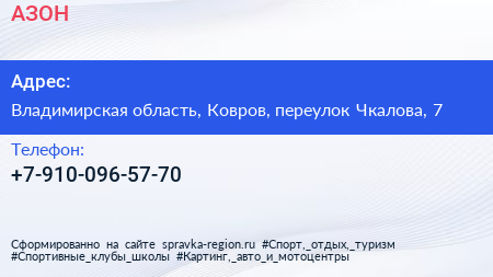 АЗОН по адресу Владимирская область, Ковров, переулок Чкалова, 7 в дальнейшем Организация, размещена в следующих категориях: