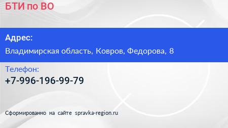 БТИ по ВО по адресу Владимирская область, Ковров, Федорова, 8 в дальнейшем Организация, размещена в следующих категориях: