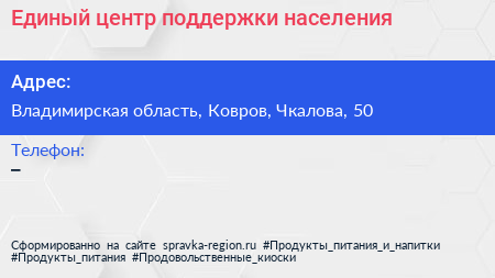 Единый центр поддержки населения по адресу Владимирская область, Ковров, Чкалова, 50 в дальнейшем Организация, размещена в следующих категориях: