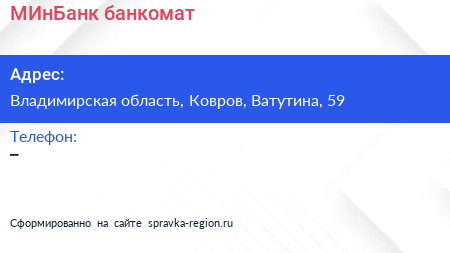МИнБанк, банкомат по адресу Владимирская область, Ковров, Ватутина, 59 в дальнейшем Организация, размещена в следующих категориях: