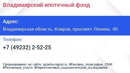 Владимирский ипотечный фонд по адресу Владимирская область, Ковров, проспект Ленина, 40 в дальнейшем Организация, размещена в следующих категориях: