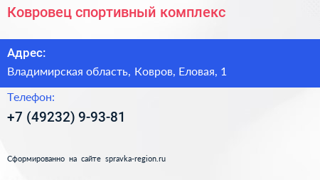 Ковровец, спортивный комплекс по адресу Владимирская область, Ковров, Еловая, 1 в дальнейшем Организация, размещена в следующих категориях: