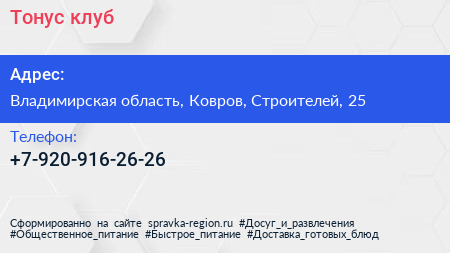 Тонус-клуб по адресу Владимирская область, Ковров, Строителей, 25 в дальнейшем Организация, размещена в следующих категориях: