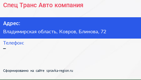 Спец Транс Авто, компания по адресу Владимирская область, Ковров, Блинова, 72 в дальнейшем Организация, размещена в следующих категориях: