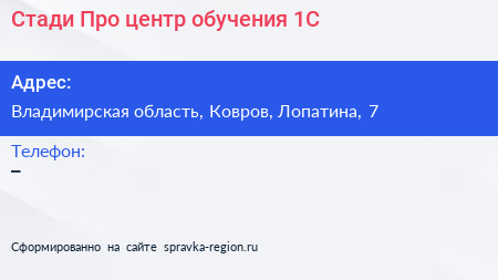 Стади Про, центр обучения 1С по адресу Владимирская область, Ковров, Лопатина, 7 в дальнейшем Организация, размещена в следующих категориях: