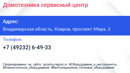 Домотехника, сервисный центр по адресу Владимирская область, Ковров, проспект Мира, 2 в дальнейшем Организация, размещена в следующих категориях: