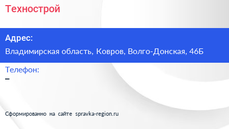 Технострой по адресу Владимирская область, Ковров, Волго-Донская, 46Б в дальнейшем Организация, размещена в следующих категориях: