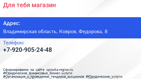 Для тебя!, магазин по адресу Владимирская область, Ковров, Федорова, 8 в дальнейшем Организация, размещена в следующих категориях: