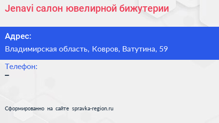 Jenavi, салон ювелирной бижутерии по адресу Владимирская область, Ковров, Ватутина, 59 в дальнейшем Организация, размещена в следующих категориях: