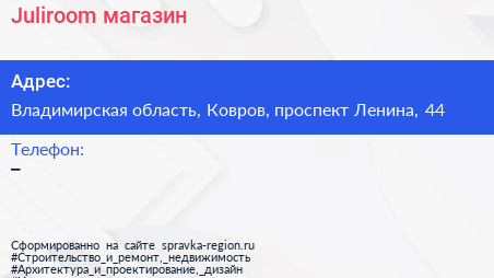Juliroom, магазин по адресу Владимирская область, Ковров, проспект Ленина, 44 в дальнейшем Организация, размещена в следующих категориях: