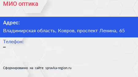 МИО, оптика по адресу Владимирская область, Ковров, проспект Ленина, 65 в дальнейшем Организация, размещена в следующих категориях:
