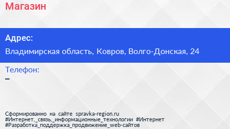 Магазин по адресу Владимирская область, Ковров, Волго-Донская, 24 в дальнейшем Организация, размещена в следующих категориях: