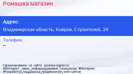 Ромашка, магазин по адресу Владимирская область, Ковров, Строителей, 24 в дальнейшем Организация, размещена в следующих категориях: