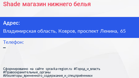 Shade, магазин нижнего белья по адресу Владимирская область, Ковров, проспект Ленина, 65 в дальнейшем Организация, размещена в следующих категориях: