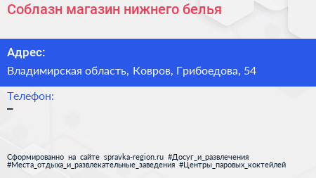 Соблазн, магазин нижнего белья по адресу Владимирская область, Ковров, Грибоедова, 54 в дальнейшем Организация, размещена в следующих категориях: