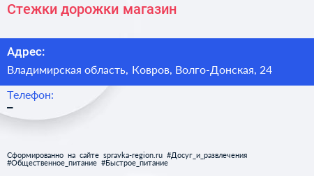 Стежки-дорожки, магазин по адресу Владимирская область, Ковров, Волго-Донская, 24 в дальнейшем Организация, размещена в следующих категориях: