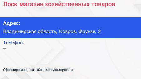 Лоск, магазин хозяйственных товаров по адресу Владимирская область, Ковров, Фрунзе, 2 в дальнейшем Организация, размещена в следующих категориях: