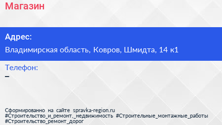 Магазин по адресу Владимирская область, Ковров, Шмидта, 14 к1 в дальнейшем Организация, размещена в следующих категориях: