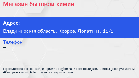 Магазин бытовой химии по адресу Владимирская область, Ковров, Лопатина, 11/1 в дальнейшем Организация, размещена в следующих категориях: