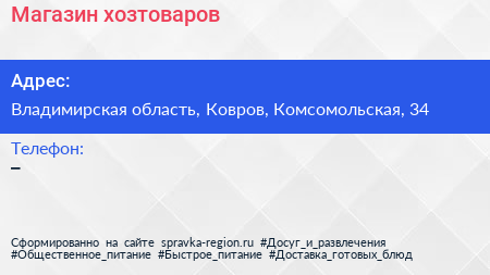 Магазин хозтоваров по адресу Владимирская область, Ковров, Комсомольская, 34 в дальнейшем Организация, размещена в следующих категориях: