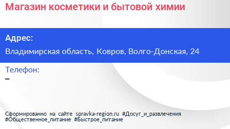 Магазин косметики и бытовой химии по адресу Владимирская область, Ковров, Волго-Донская, 24 в дальнейшем Организация, размещена в следующих категориях: