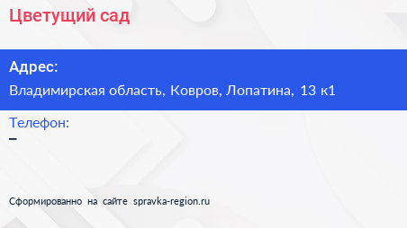 Цветущий сад по адресу Владимирская область, Ковров, Лопатина, 13 к1 в дальнейшем Организация, размещена в следующих категориях: